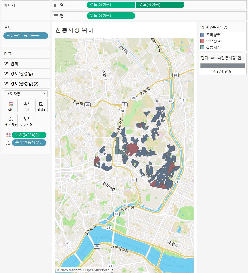 - 공간 함수 (AREA함수) : 태블로의 함수 중 지리 정보를 표현하는데에 사용되는 함수들